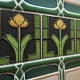 This exquisite mid-century yellow tulip ceramic tile is a loving homage to the time-honored Arts and Crafts movement. Expertly crafted in our Barcelona workshop, it features abstract symmetrical shapes and imitates the captivating allure of mid-century modern faux relief tiles. The symmetrical designs echo a harmonious balance, the ideal expression of abstract aesthetics of mid-century modernism.