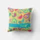 Yellow Turquoise Modern Pasley Pattern Monogram Throw Pillow
