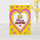 This Valentine's Day card features a large layered heart in the center, outlined in black and stacked in deep fuchsia, light pink, yellow, and bright white. Inside the white middle, the text reads “BE Mine VALENTINE,” with each word outlined in black and filled with different colors. “BE” is yellow, “Mine” is fuchsia, and “VALENTINE” is red, and the letters look thick and easy to read. The background is a strong canary yellow that makes the heart stand out right away. Small pink hearts with black outlines are scattered all around the background like confetti. You can also spot a few tiny solid pink hearts tucked along the yellow and light pink layers of the big heart. Overall, it feels cheerful, sweet, and full of affection 💕❤️.