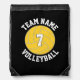 Yellow Volleyball Team Name & Player Number Custom Drawstring Bag