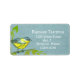 A pretty nature themed return address sticker featuring a bright yellow warbler bird perched on a tree branch with yellow leaves drawn in pen and ink with watercolor on a grey watercolor wash background.