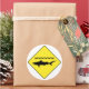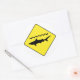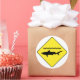Sticker with a yellow traffic sign with a 'warning shark' icon.