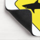 Mousepad with a yellow traffic sign with a 'warning shark' icon.