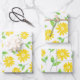 Yellow Watercolor Daisy Stems Pattern Wrapping Paper Sheets