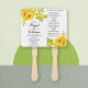 Yellow watercolor cactus flowers and succulent floral fall wedding program hand fan. It showcases a gorgeous bouquet of cactus flowers with succulent leaves.