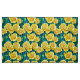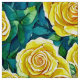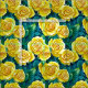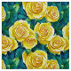 Fabric in a watercolor pattern of old-fashioned, yellow roses against a leafy green background