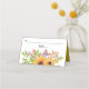 This delightful wedding folded place card features a beautiful arrangement of yellow sunflowers, green leaves, fall leaves, and berries. Your names are elegantly written in script typography, and the card serves to escort your guests to their seats.