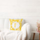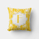 Yellow, white bamboo pattern custom decorative throw/toss pillow featuring a retro bamboo pattern with canes and leaves and your text- monogram in a grey frame. This cute, girly tropical nature inspired design is perfect for a retro/vintage or modern/contemporary style home.