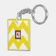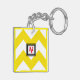 Chic and stylish yellow and white bold chevron stripe key ring with red monogram initial which can be customised to your preference. Practical and unique accessory to accompany a matching tote bag or wallet for the modern trend setter on the go! And a great gift idea.