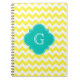 Yellow White Chevron Teal Quatrefoil Monogram Notebook