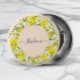 Elevate your style with our charming button featuring a stunning watercolor wreath of yellow and white spring daffodils! 🌼 Add a personal touch with the customizable modern script font, allowing you to replace the sample text with your own name or leave it blank for a text-free design that lets the beauty of the daffodil wreath shine through. 🌟