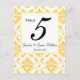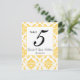 Yellow White Damask Wedding Table Number Cards
