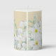 A floral border of hand painted white daffodils, lily of the valley and foliage on a (customizable) yellow background. Other colours and candle sizes/shapes are available in my store.
