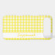 This design features your custom name over a yellow and white gingham check background. Personalize the the text or edit using the design tool to select a font style, size, and color you like. A sweet personalized birthday or Mother's Day gift for the new phone. You can also add this design, where it fits appropriately, to other products shown in the TRANSFER scroll bar such as the playing cards or luggage tag.