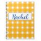 Beautiful Yellow and White Gingham Pattern Personalized Notebook, is a classic design that contains a checkered look or buffalo plaid, gorgeous colorful design. Buy Today!