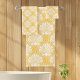Transform your bathroom into a serene coastal retreat with this elegant bath towel set. The captivating design features stylized seashells in a crisp white, gracefully arranged on a soothing yellow backdrop. The intricate details and delicate patterns evoke a sense of tranquility and seaside charm. Crafted from plush, absorbent cotton, these towels offer both luxurious comfort and practicality. Whether you're stepping out of a relaxing bath or drying off after a refreshing shower, wrap yourself in the gentle embrace of these beautiful towels and let the worries of the day drift away. Perfect for adding a touch of coastal elegance to your bathroom decor or as a thoughtful gift for beach lovers and those who appreciate refined style.