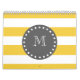 Yellow White Stripes Pattern, Charcoal Monogram Calendar
