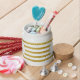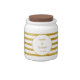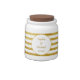 Yellow White Wedding Candy Jar with chic gold horizontal stripes pattern with bride and groom names