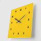 Minimal yellow wall clock with numbers in a cartoonish font.