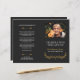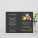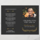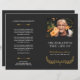 Elegant funeral program in a muted black and white, with elegant fonts and a yellow wreath. Add a photo of your loved one along with their name and years living. The name is written in a pretty yellow script. On the back you can write the obituary and program. Fold it yourself for a practical program!