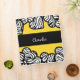 Girly, yellow, black and white pattern with animal print hearts. You can customize it with your own text.