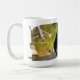 This ceramic mug is shown with a photo print of a bear running in the river in the famous Yellowstone National Park.