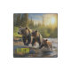 Stone magnet set of four is shown with photo art prints of a bear in famous Yellowstone National Park.