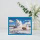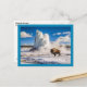 Postcard is shown with a beautiful photo print of a bison near a geyser in Yellowstone National Park.