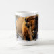 This ceramic coffee mug is shown with a photo print of a bison in the famous Yellowstone National Park.