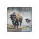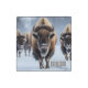 Stone magnet set of four is shown with photo prints of bison in famous Yellowstone National Park.