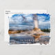 This postcard is shown with a photo art print of a geyser in Yellowstone National Park.