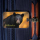 This luggage tag is shown with a photo print of a wild Black Bear in Yellowstone National Park.
