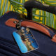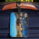 This luggage tag is shown with a photo print of a wild moose in Yellowstone National Park.