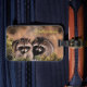This luggage tag is shown with a photo print of cute racoons in Yellowstone National Park.