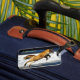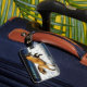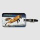This luggage tag is shown with a photo print of a wild red fox in Yellowstone National Park.