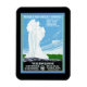 Vintage tourism and travel advertisement illustration for Yellowstone National Park. I added thoughtfully designed, colorful graphic design borders.