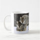 Coffee Mug shown with a photo print of a group of wolves in Yellowstone National Park.