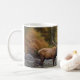 Coffee Mug shown with a photo art print of elk in the river in Yellowstone National Park.