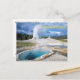 Postcard shown with a photo print of a geyser and hot spring in the famous Yellowstone National Park.