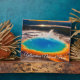 This art decor plaque is shown with a photo print of the beautiful Grand Prism hot spring located in the famous Yellowstone National Park.
