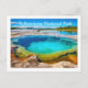 Postcard is shown with a beautiful photo print of the thermal hot pots in Yellowstone National Park.