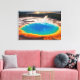 Wrapped canvas art is shown with a photo art print of the famous prismatic thermal hot pot in Yellowstone National Park from a bird's eye view.
