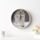 This wall clock is shown in a stylish Yellowstone wolf photo print.