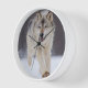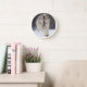 This wall clock is shown in a stylish Yellowstone wolf photo print.