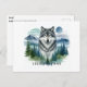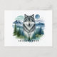 This postcard is shown with a watercolor art print of a wolf in Yellowstone National Park.