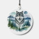 This lovely wind chime is shown with a Yellowstone wolf watercolor art print.