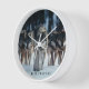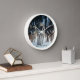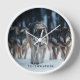 This wall clock is shown in a stylish Yellowstone wolves photo print.