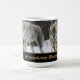 This ceramic coffee mug is shown with a photo print of wild wolves in Yellowstone National Park.