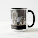 This ceramic coffee mug is shown with a photo print of wild wolves in Yellowstone National Park. Tan accents with Black interior and handle.