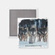 This magnet is shown with a photo print of wolves in the famous Yellowstone National Park.